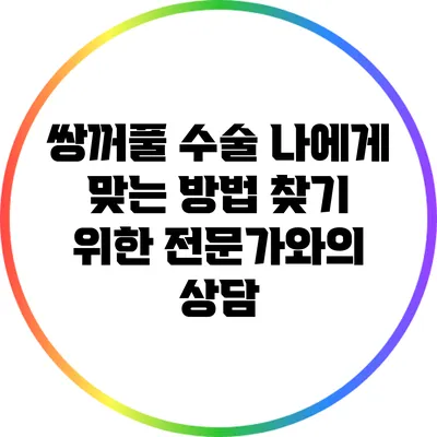 쌍꺼풀 수술은 개인의 눈 모양과 요구에 따라 여러 방법이 존재해요. 가장 중요한 것은 전문가와 상담하여 나에게 맞는 방법을 찾는 것이에요. 수술의 성공은 철저한 상담과 사전 준비에 걸쳐 있으니, 자신에게 가장 알맞은 선택을 통해 자신감을 얻어보세요. 지금 바로 전문가와의 상담을 통해 새로운 당신을 찾아보세요!