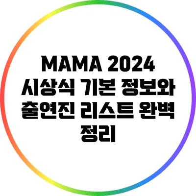 MAMA 2024 시상식: 기본 정보와 출연진 리스트 완벽 정리