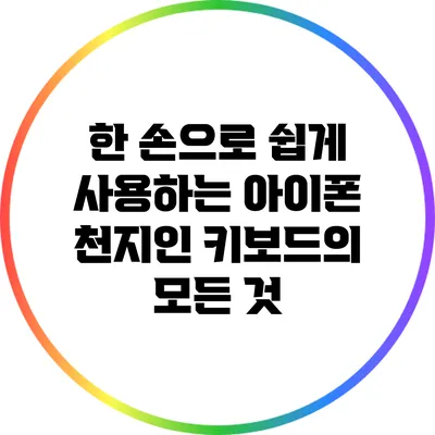 한 손으로 아이폰을 사용하는 것은 많은 사용자에게 일상적인 도전입니다. 특유의 큰 화면을 가진 아이폰에서 한 손으로 입력을 하기란 쉽지 않죠. 하지만 효율적인 천지인 키보드를 사용하면 이 도전이 훨씬 수월해집니다. 이 블로그 글에서는 천지인 키보드의 특징과 장점, 설정 방법, 그리고 활용 팁까지 자세히 살펴보도록 하겠습니다.