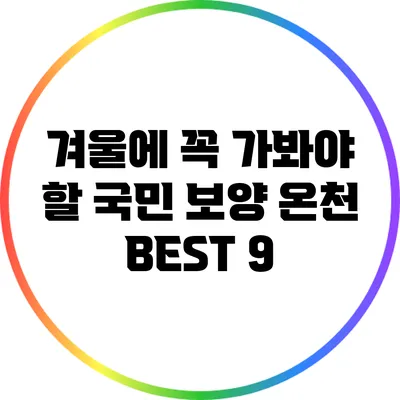 겨울철에 흐르는 차가운 바람과 눈 내리는 풍경을 보면서, 포근한 온천에서 편안한 시간을 보내는 상상을 해보세요. 온천은 단순한 휴식 장소가 아닌, 우리의 몸과 마음에 탁월한 치유와 보양을 선사하는 훌륭한 장소입니다. 오늘은 겨울에 꼭 가봐야 할 국민 보양 온천 BEST 9를 소개할게요.