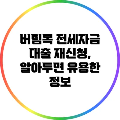 전세 자금을 마련하는 것이 힘든 현실에서, 많은 사람들이 ‘버팀목 전세자금 대출’에 관심을 가지고 있습니다. 특히 대출을 받았다가 재신청을 고민하는 이들이 많죠. 이 포스트에서는 버팀목 전세자금 대출 재신청에 대한 모든 내용을 알려알려드리겠습니다. 대출을 받아야겠다고 마음먹었다면, 먼저 이 글을 통해 필요한 내용을 쏙쏙 챙겨보세요.