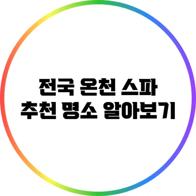 온천은 우리에게 단순한 휴식처를 넘어 심신의 회복과 재충전의 장소로 여겨지고 있어요. 한국 전역에는 다양한 온천 스파가 있어, 방문객들에게 최고의 힐링을 알려알려드리겠습니다. 이번 글에서는 전국의 추천 온천 스파 명소에 대해 자세히 알아보고, 각 지역의 특색과 시설, 그리고 예약 정보 등을 제공할게요.