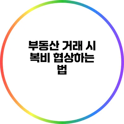 부동산 거래 시 복비 협상은 비용을 절감하고 중개인과의 신뢰를 쌓는 중요한 과정이에요. 시장조사를 통해 유리한 조건을 이끌어내고, 현명하게 협상하는 것이 필요하죠. 협상의 준비와 진행에 있어 꼼꼼히 체크하며, 감정의 동요를 피하는 것이 중요해요. 이제는 자신 있게 복비를 협상해보세요. 그렇게 된다면, 성공적인 거래를 이끌어낼 수 있을 거에요!