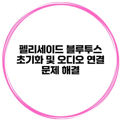 펠리세이드 블루투스 초기화 및 오디오 연결 문제 완벽 해결 가이드